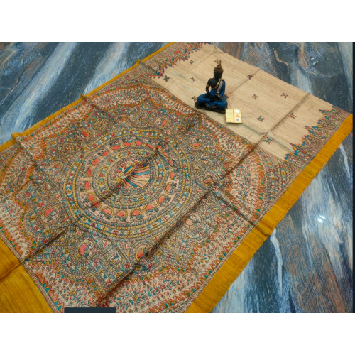 Product type:Pure handloom tussar ghiccha Madhubani screen print silk saree with Un stitched blouse