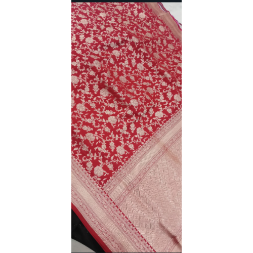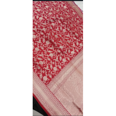 | SAREE WORK | Red color saree with minakarai weaving and zari weaving . |