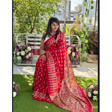 Product type:A beautiful party wear Semi gaji original saree ajrak gaji bandhej print