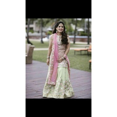 Party wear embroidery work top with flower work in bottom shirt too