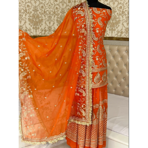 Product Type | Party wear fancy Sharara Orange color Dress material in Viscose georgette fabric. |