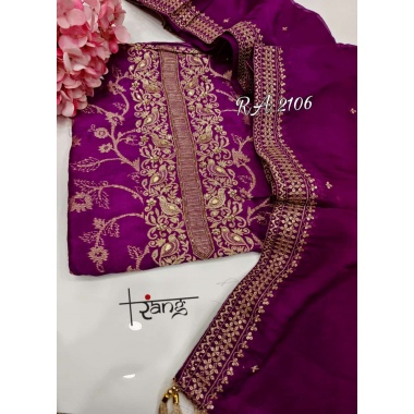 A party wear salwar dress material in pure silk fabric with embroidery and thread work in purplish pink color-RA-2106