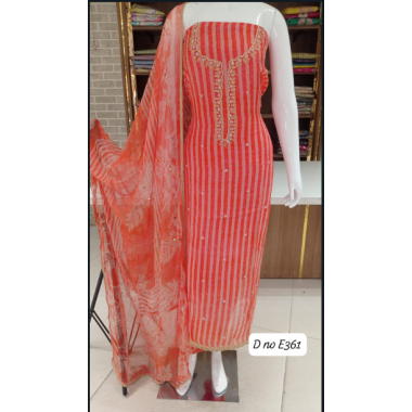 Imported soft organza dress material with digital print with beautiful neck with pearl work-E361-C