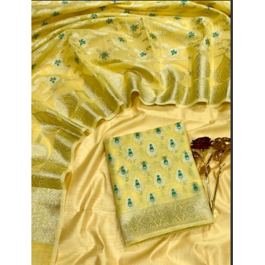Product type: A beautiful party wear salwar suit dress material in pure banaras linen fabric