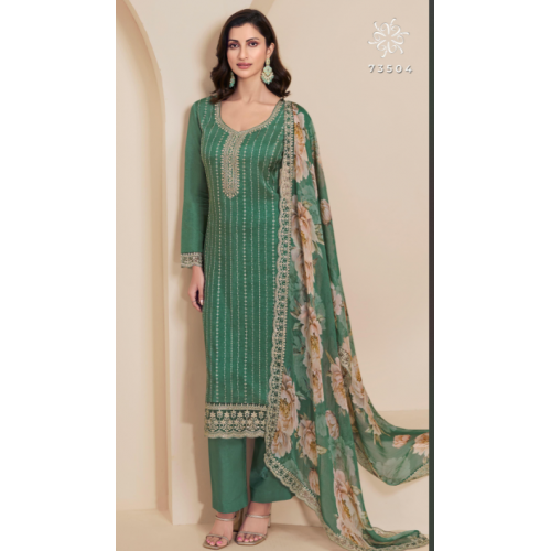 Product type: Kulesh brand presenting you a party wear dress material in moong silk .