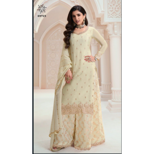 Vinay brand presenting a beautiful ready to wear Sharara salwar suit in pure chinon fabric-KULEESH-69723