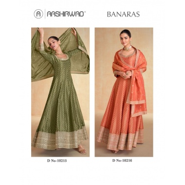 Aashirwad presenting a new arrival of readymade  pure organza jaquard silk gown -BANARAS-10215