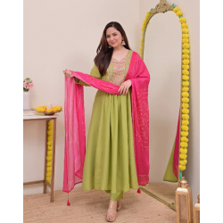Presenting a premium Designer Anarkali Gown Set crafted in Pure Vichitra Silk, featuring elegant sequence coding embroidery work for a rich festive look. This 3‑piece set includes a beautifully designed gown, matching bottom, and a 2.2 meter heavy silk printed dupatta that adds a luxurious finishing touch. Perfect for weddings, festive events, parties, and special occasions, this outfit blends comfort with high-end designer detailing.