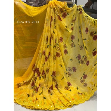 Product type:Party wear light weight saree with embroidery and cut work in borders