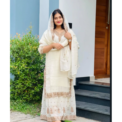Product type: This outfit seems luxurious and perfect for special occasions. The combination of embroidery, sequence work, and crunchy silk fabric gives it a stunning look.