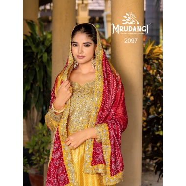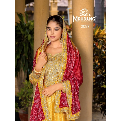 >Product type: This MRUDANGI outfit sounds stunning and Perfect for special occasions or everyday glamour with real chinon Fabric