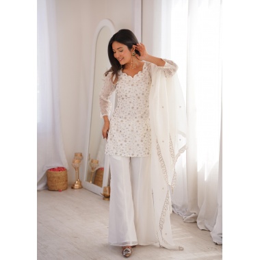 Ready‑Made Sequence Embroidered Suit Set – Top, Palazzo & Dupatta (Fully Stitched)-LG‑2087