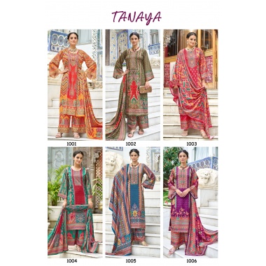 TANAYA Readymade Pakistani Suit – Top, Palazzo & Dupatta (Fully Stitched)-1001-1006