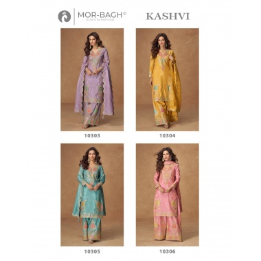 Introducing KASHVI from Aashirwad Creation, a luxurious designer suit in Premium Simar Silk Suit Set – Top, Palazzo & Dupatta (Fully Stitched)-10303-10306