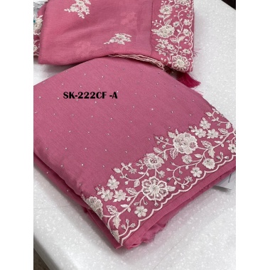 Product type:SK presenting a party wear Dola silk with embroidery work salwar suit with chiffon fabric dupatta