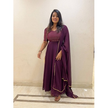 Presenting Designer Anarkali Gown with Embroidery Sequence Work-LFH-SSC-667